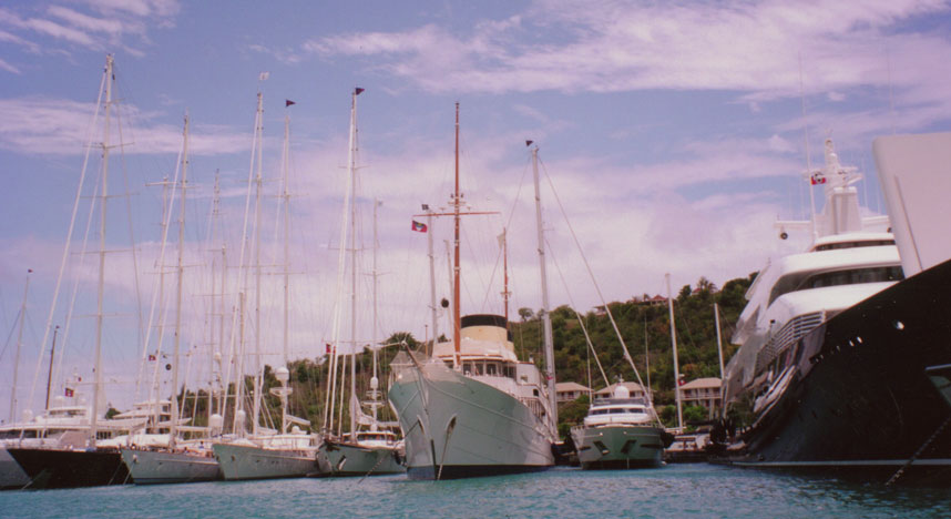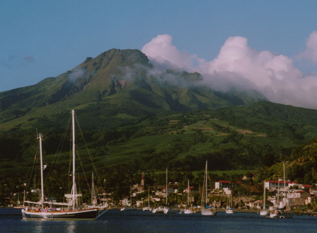 The following two months were a classic Caribbean cruise. The sun was almost always shining, the waters a deep blue offshore and azure over the sandy shallows; flying fish leapt in shoals; the trade wind blew steadily and the water was the same temperature as the air; the sun set vertically with an occasional “green flash” – really more of a glow. At night, you could see both the Southern Cross and the North Star; shooting stars competed with phosphorescence on night passages. That was the good side – and to be fair, it was very good. On the down side, the best known anchorages were very crowded – over 50 boats at Clifton, Union Island – reportedly over 100 at Christmas – in a very small harbour with inadequate facilities. Admiralty Bay, Bequia, must have had over 200 yachts. We hadn’t realised how cheap air travel has expanded chartering. In some harbours the majority of boats are on charter. Unfortunately, many, though by no means all of these are poorly or even irresponsibly handled; also a minority are noisy and unpleasant. But it is possible to find quiet anchorages. They are away from towns and/or are relatively difficult to get into or less comfortable because of swell. We particularly enjoyed Chatham Bay, Union Island, St. Pierre, Martinique and Anse de Colombier, St. Barts.