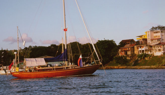 Doug Ritherdon, an East Coast friend, joined us for the Atlantic crossing. We set out from Puerto de Mogan on 23 November. Coincidently, our departure coincided with the ARC start. Thus, for the first week we saw two or three larger yachts a day overtaking us. With the exception of the daytime heat, our passage was very comfortable. The winds were force 3-4 from almost dead astern, with two mild squalls only on the last two days. We gybed often, despite getting well south fairly early. In light spells we set the spinnaker, but generally kept up good speed with main and poled genoa. We arrived in Scarborough, Tobago on 13 December – just over 20 days for 2800 miles.